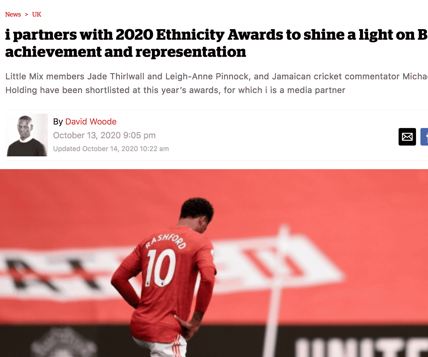 articles 28 Oct 2020 Announcing our new partnership with iNews The Ethnicity Awards are proud to announce our new partnership with iNews. The print and online mainstream media outlet… Sarahg